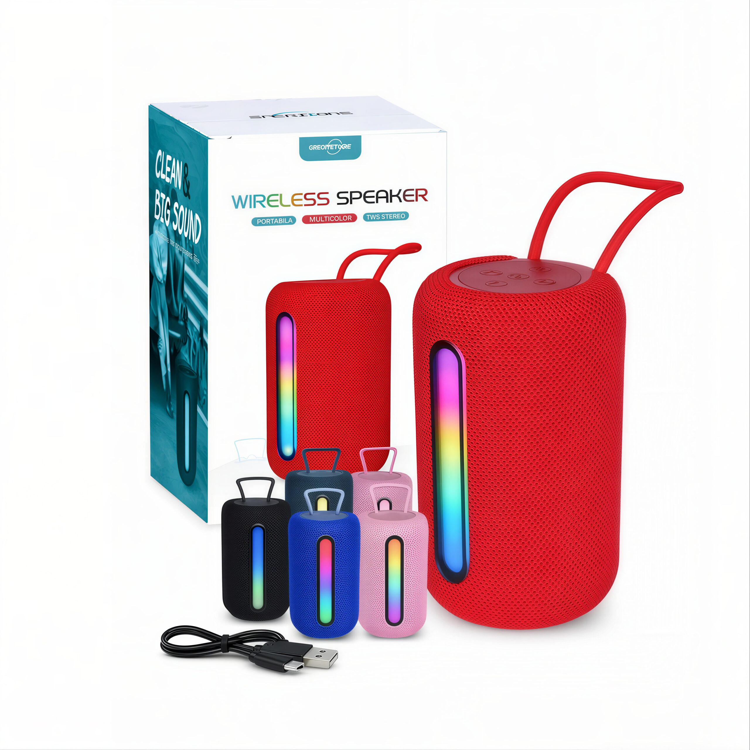 Boxa Bluetooth portabilă de 13 cm cu LED multicolor RGB este un produs modern și atractiv, ideal pentru cei care caută un dispozitiv audio compact, dar performant, potrivit atât pentru utilizare personală, cât și pentru revânzare în regim engros. Datorită dimensiunii sale reduse și designului cilindric ergonomic, această boxă este ușor de transportat și se integrează perfect în orice context – acasă, la birou, în vacanță sau la petreceri în aer liber.