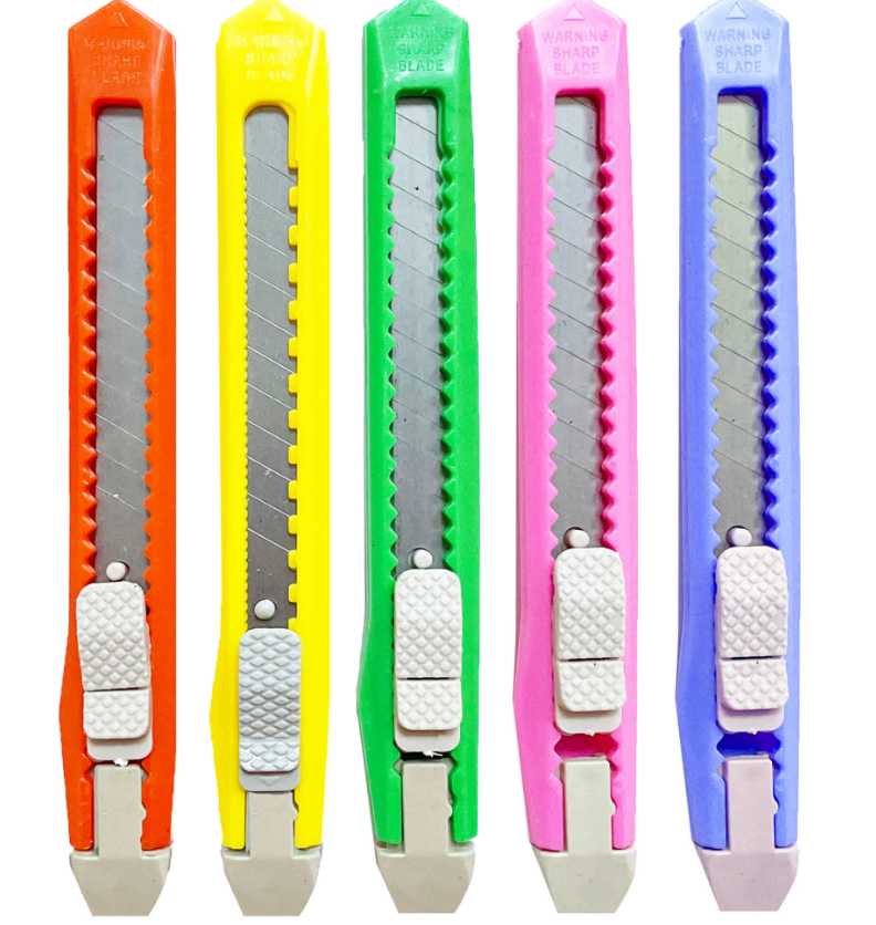 Cutter mic, 9mm din plastic, multicolor, 24/set engros
