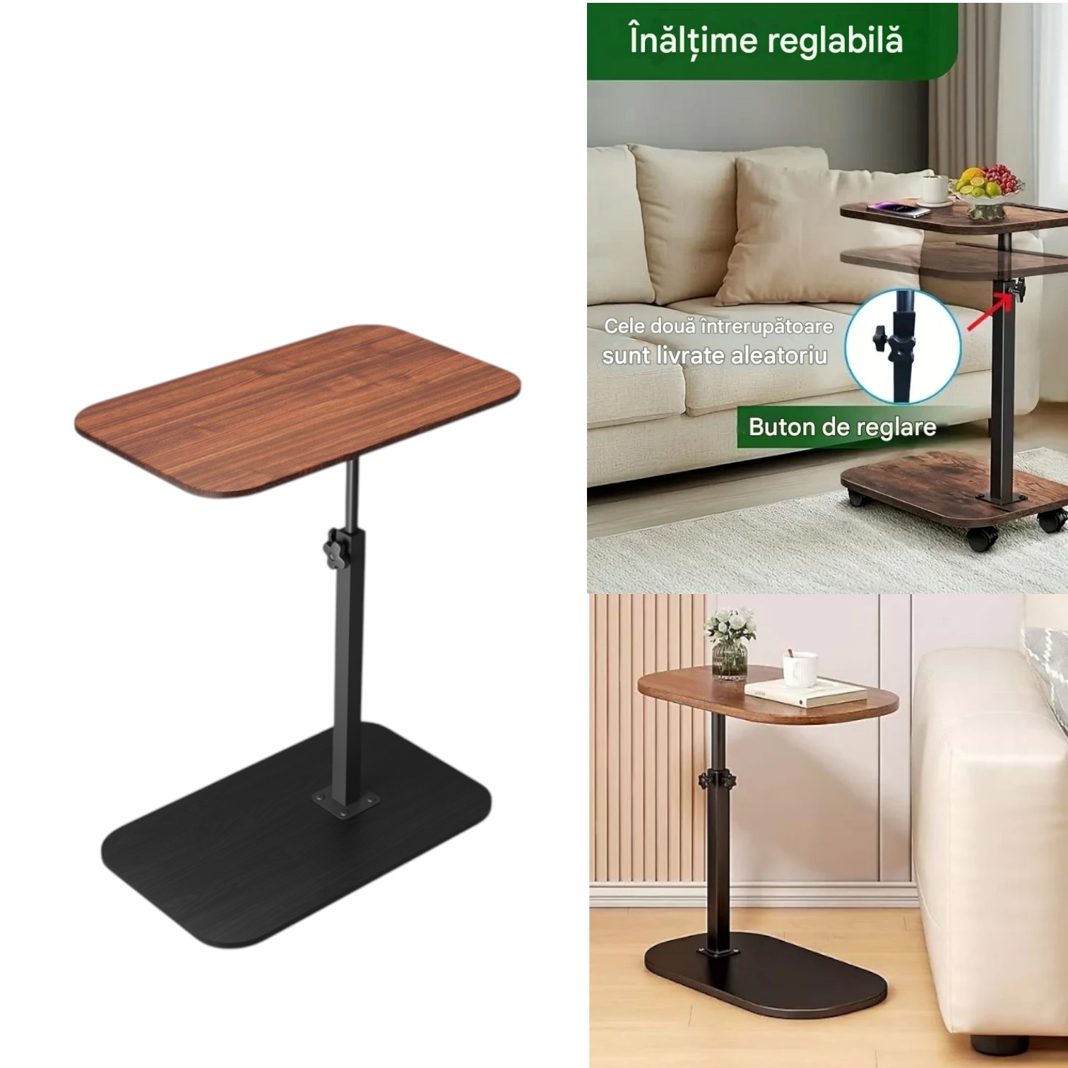 - Dimensiuni: 40×30 cm (blat), înălțime reglabilă între 60 și 80 cm
