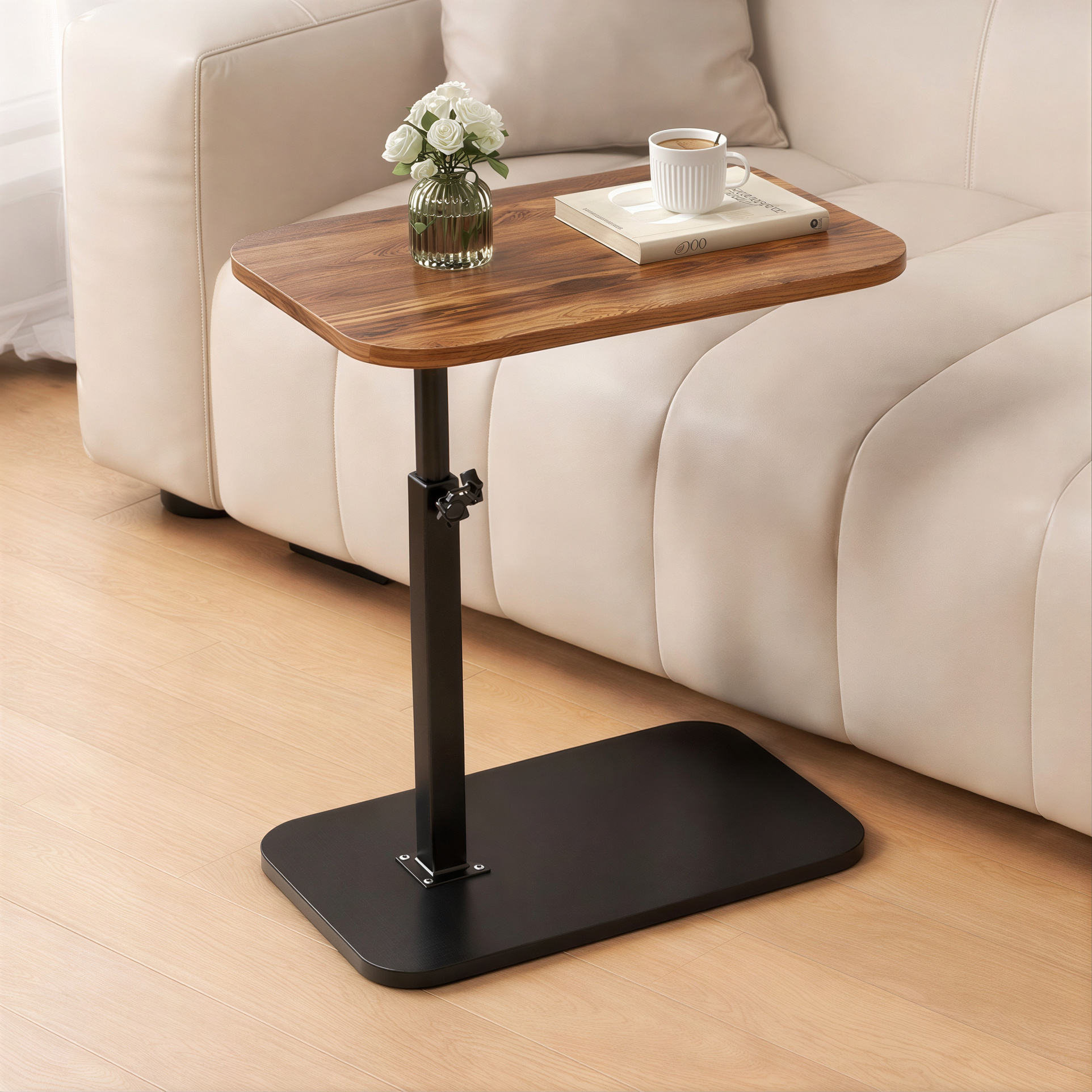 - Blat rotativ din lemn – permite ajustarea ușoară a poziției pentru un confort sporit, fiind ideal pentru utilizare în pat, pe canapea sau ca suport de lucru.