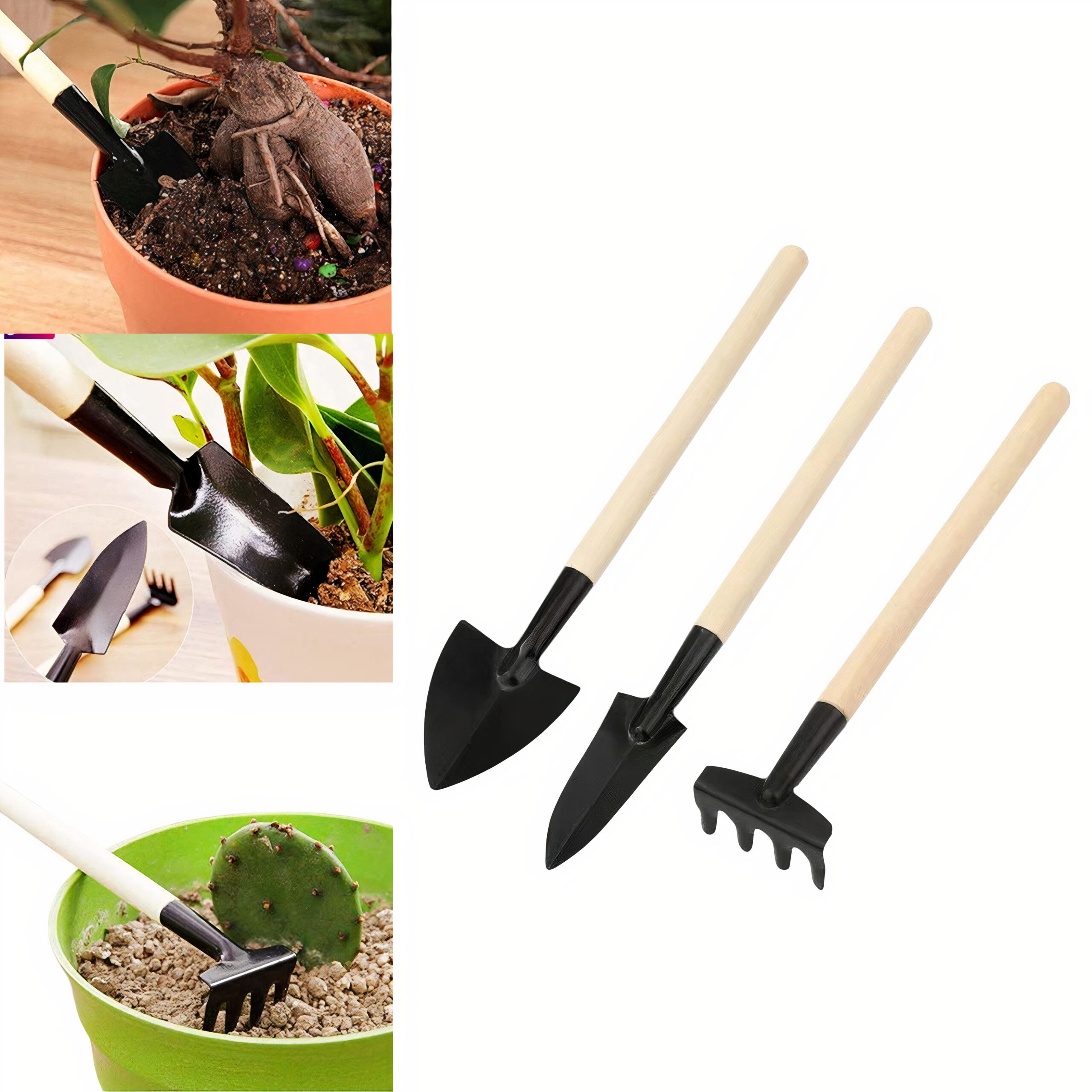 Unelte de Grădinărit 3/set, cu Maner din Lemn 20cm Diferite Modele Engros