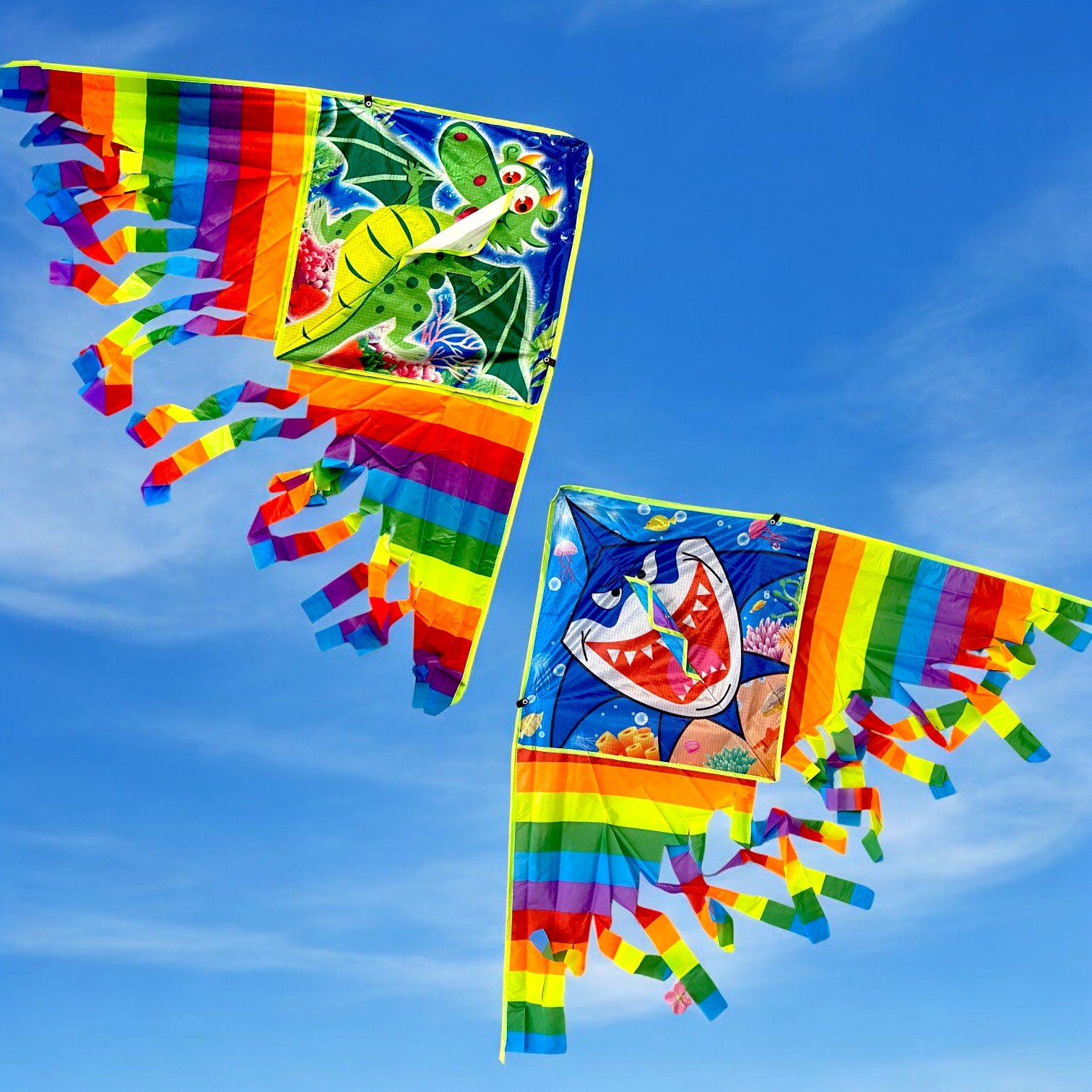 Setul de 20 de zmee multicolore, cu dimensiuni de 60x90x90 cm, este o alegere excelentă pentru copii și organizatori de activități în aer liber. Fabricate din material impermeabil și rezistent, aceste zmee sunt ușor de asamblat și de utilizat, oferind o experiență de zbor captivantă și sigură.